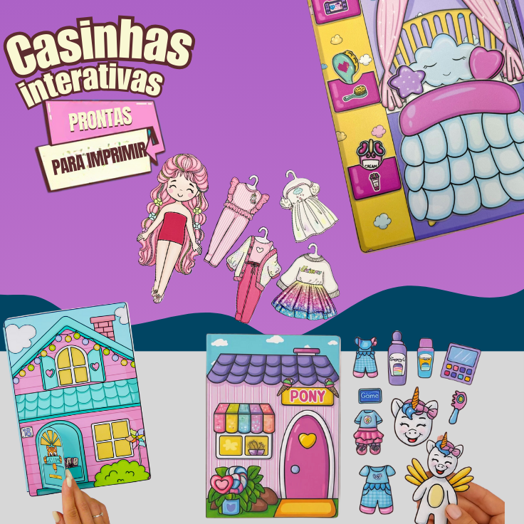Casinhas de bonecas em PDF prontas para imprimir, com visual moderno e vídeo explicativo, para você montar em casa de forma simples e divertida.
